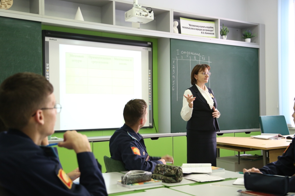 Кадеты 14 взвода, под руководством преподавателя математики Веревкиной Л.Е., на уроке геометрии обобщали свои знания по теме треугольник, опыт применения его свойств и видов при решении задач. Урок был построен в форме дидактической игры.