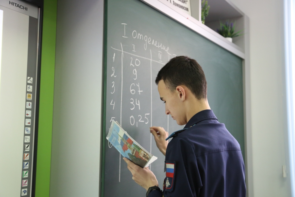 Кадетам на выбор были предложены категории задач: «Мозговой штурм», «Прямоугольный треугольник», «Математики и жизнь». За каждую верно решенную задачу отделение получало баллы, которые суммировались в окончательный результат. По итогам игры безусловным лидером стало 2 отделение – командир Волков Богдан, капитан -Евсеев Алексей.