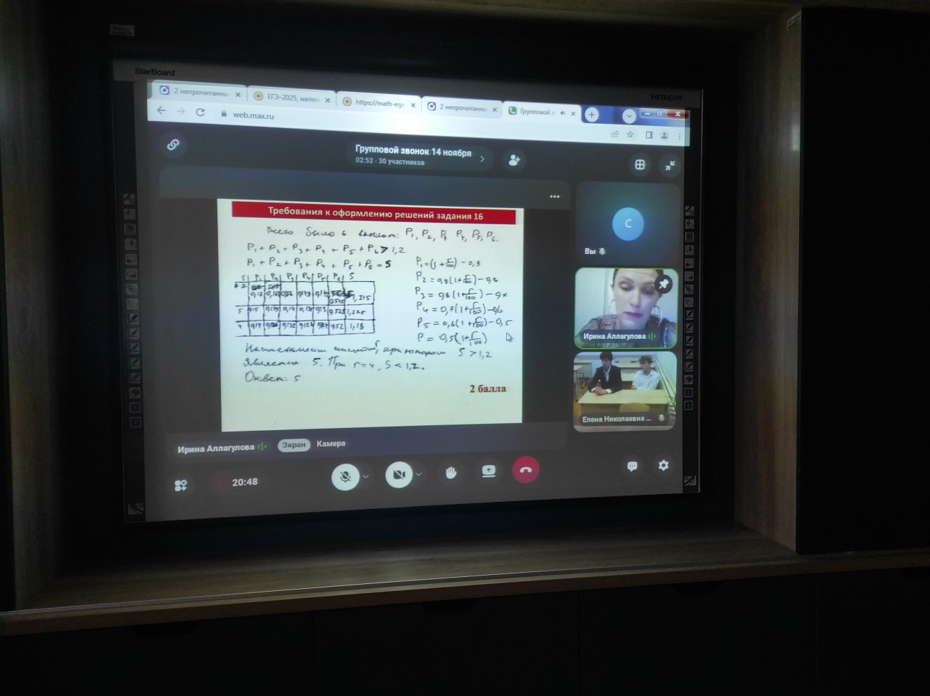 После этого председатели региональных предметных комиссий провели мастер –классы. Ирина Аллагулова в рамках профильной математики рассмотрела вопрос о решении заданий с развернутым ответом повышенной сложности.